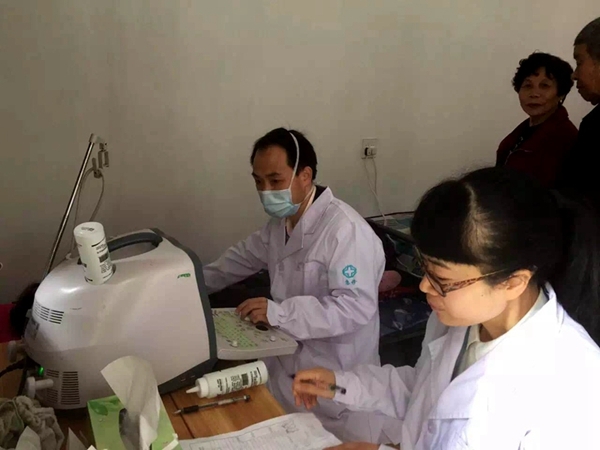 3月19日上午,门诊医技第二党支部一行10人,来到福昌基村开展“推行健康之路”义诊活动,为60多位村民开展涵盖内科、外科、五官科、B超、血糖、血压、心电图等项目的体检,受到欢迎。