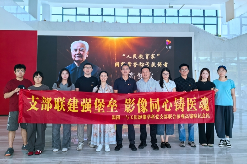 10月11日,温州医科大学附属第一医院放射科党支部与玉环市人民医院影像学科党支部联合开展“支部联建强堡垒影像同心铸医魂”党建活动,在集团党委委员、副院长洪伟峰和温附一放射影像中心主任杨运俊带领下,两个支部党员10余人共赴高铭暄学术馆研学,推动党建与业务深度融合。据悉,高铭暄先生是“人民教育家”国家荣誉称号获得者,是高等教育与法治建设的标杆。在学术馆内,党员们观看事迹短片,聆听讲解员讲述其“求学之路...