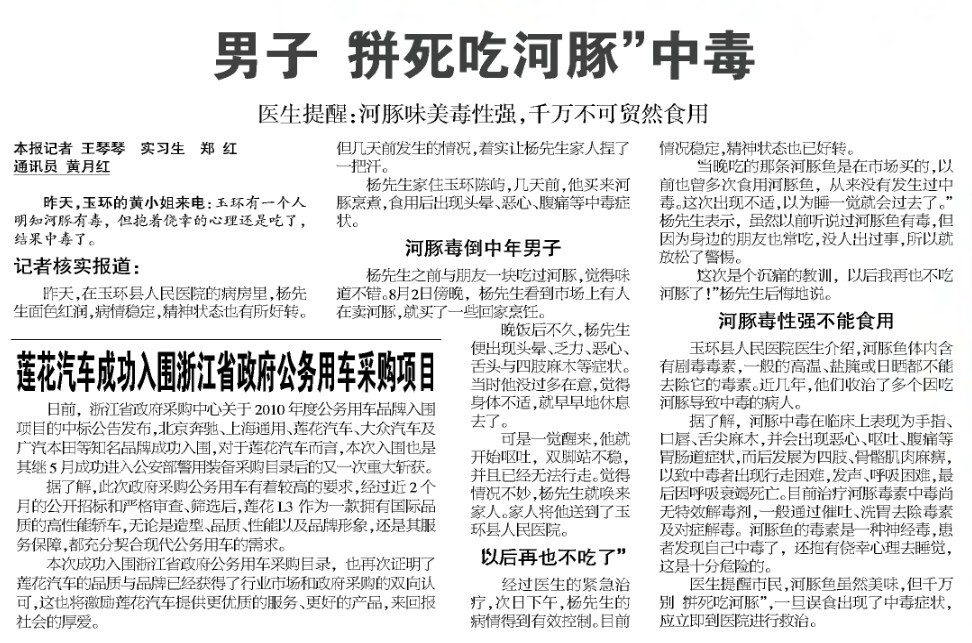 【台州晚报】男子“拼死吃河豚”中毒