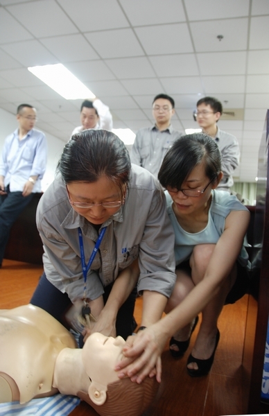 从上周开始,该院派出3名医务人员到华能玉环电厂,分批对200多位员工进行心肺复苏培训,增强他们的急救能力。据悉,电力部门与电打交道频繁,是突发事件的高发地之一。人一旦遭电击,会导致心肺停搏。心肺复苏开始得越早,患者获救和存活的机会越多。如果能在4分钟内得到心肺复苏救生,存活率可达50%。