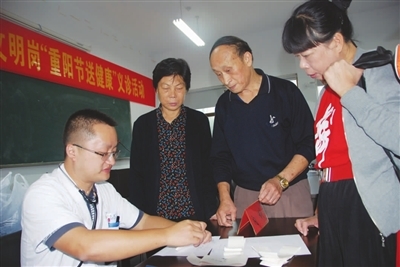 从义诊现场了解到,大部分老人身体都不错,少数人因黄斑变性、视神经萎缩引起视力下降;一些老人出现心跳异常,或血糖较高。医生告诉了他们应该注意的问题,还建议严重的病人要到医院做全面的检查。