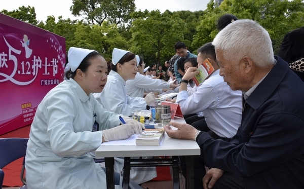 在现场,护理人员免费为前来咨询的群众进行体检,测量血压、血糖,也向大家讲解高血压、高血糖等常见病的控制方法,指导养成良好健康的生活习惯。70岁的林师傅患糖尿病多年,他咨询道:自己每天早上都跑步锻炼,不吃药行不行?护士为他测了血糖,并提醒要警惕低血糖的情况,可以随身带些饼干以备不时之需。