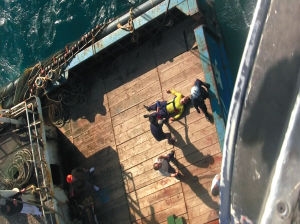 船员下船舱搬鱼虾突然晕倒