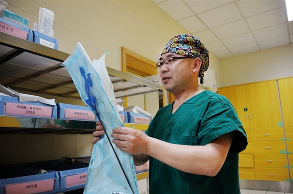 在手术室外,李德双娴熟地为主刀医生搬运手术中用到的无菌包、器械和仪器检查,再按照规定穿好防护服,一遍遍地用消毒液擦手。做完这些基本工作后,他和往常一样沉稳地走入手术室。而在手术室里的这一站,至少得两三个小时。