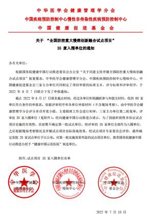 日前,2022健康中国发展大会在北京举行。大会上,由健康中国行动推进委员会办公室指导支持,中华医学会健康管理学会、中国疾控中心慢性病中心、中国健康促进基金会共同发起建立的“全国防控重大慢病创新融合试点项目”正式发布。