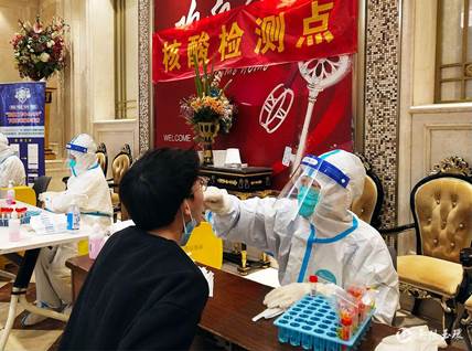 “今天我是轮班轮到休息的,不过对我们来说休息就是备战,就是要随叫随到的。一叫就要到位,我觉得很正常。”从当天凌晨5时30分开始,王璐就一直在华鸿一期核酸采样点采集市民的核酸样本。