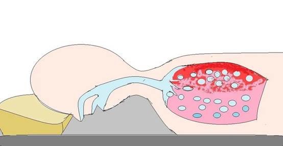 【趴卧时,受压的肺泡鼓起】