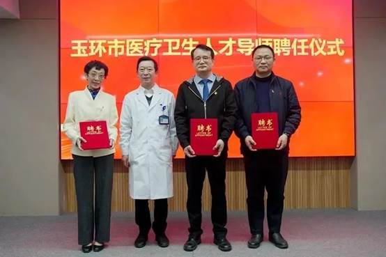 会上,陈增瑞向林刃舆、陈晓云、李贺、黄益灯四位耳鼻咽喉科专家颁发玉环市医疗卫生人才导师聘任书。
