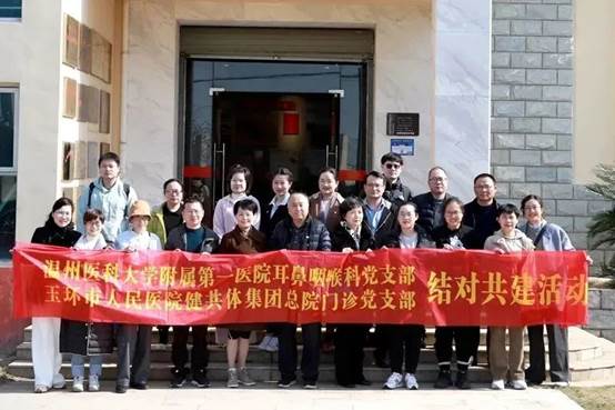 为更好地发挥党建引领作用,大力推进医学专科合作,普惠百姓健康,3月4日下午,温州医科大学附属第一医院总院耳鼻咽喉科党支部16人来到玉环市人民医院,与门诊党支部耳鼻咽喉科开展“党建+学科”结对共建交流活动,促进党建与业务深度融合。