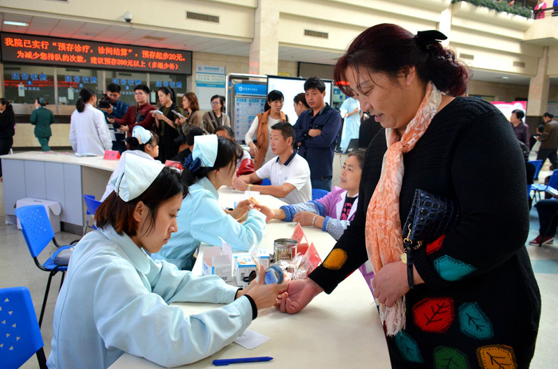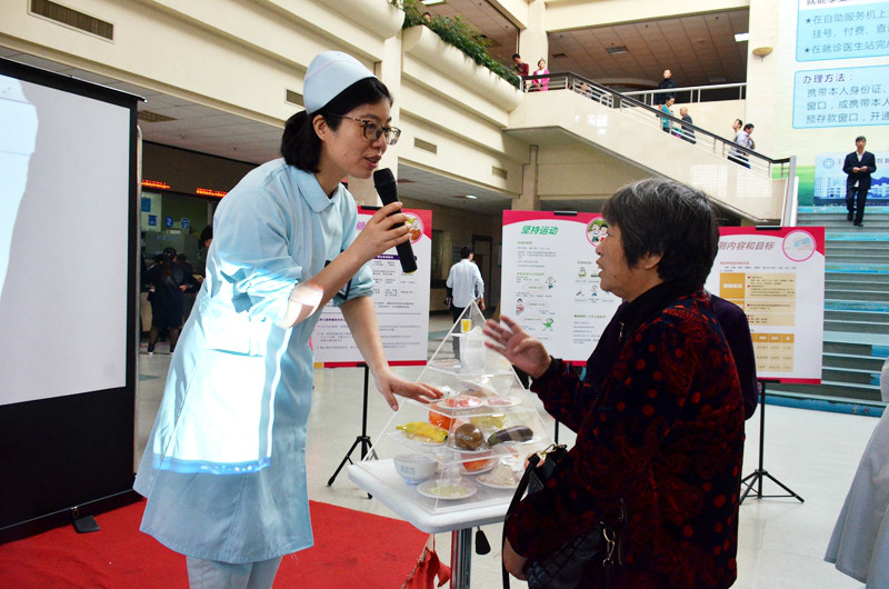 当天上午8:30,医院门诊大厅内人头攒动。在义诊区,护士们为前来咨询的市民挨个测血压、量血糖,并为他们制定一份专属自己的检测报告单。另外,对于血糖、血压值偏高的人,医生对其一对一问诊,了解他们日常的饮食、运动及生活情况,为他们制定科学的处方。同时对糖尿病患者提出的一些问题也做出详细的解答。