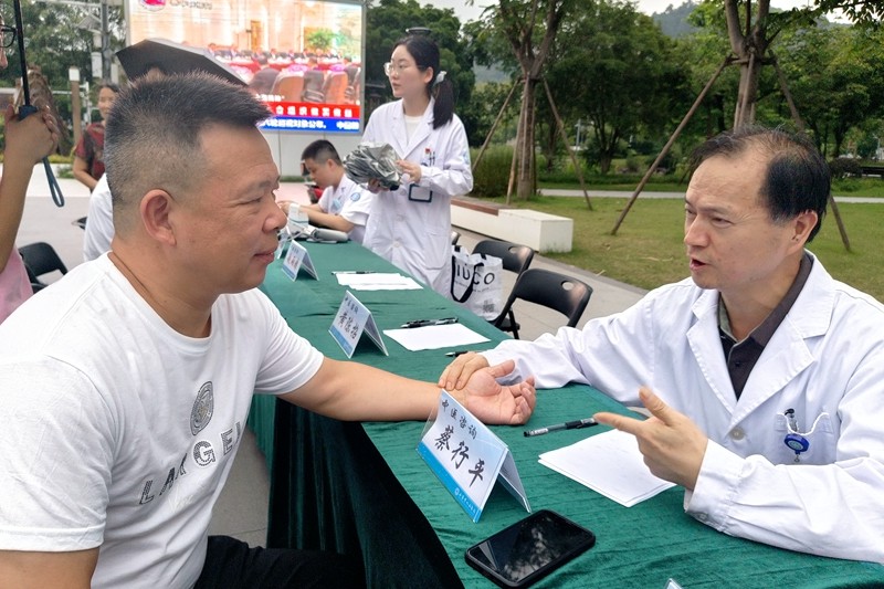 义诊过程中,医护团队充分发挥中医药特色优势,为群众提供把脉问诊、中医体质辨识、穴位按摩等服务,精准解答各类健康疑问。同时,通过发放中医养生手册,细致讲解夏季养生要点——从饮食调理的具体方案到规律作息的实践方法,从情志调摄的小技巧到常见慢病的居家护理,医护人员均耐心细致地逐一解答,让群众直观感受中医药“治未病”的智慧。