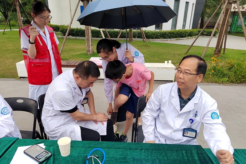 为庆祝《中华人民共和国中医药法》实施八周年,7月16日下午5时,中医药剂党支部携手骨科党支部、内科第一党支部,在玉环公园共同举办“弘扬中华国粹,服务人民健康”名医夜间慈善义诊活动,以实际行动践行中医药惠民初心。