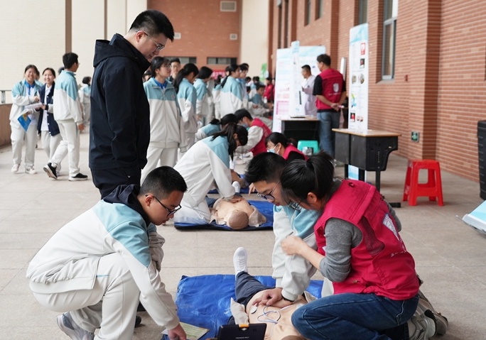 为深入推进校园健康教育,普及应急救护与健康知识,4月13日下午,我院联合温州市第七人民医院走进玉环中学,开展“健康青春・心灵护航”大健康主题游园活动。我院组织急诊科、外科、精神卫生科、眼科等科室人员组成专业医护团队,为高一、高二近千名师生带来实用、生动的健康技能体验。活动现场设置心灵成长区和健康技能区两大板块,内容丰富、形式新颖。温州市第七人民医院负责的心灵成长区设置了心理飞行棋、VR心理体验舱、...