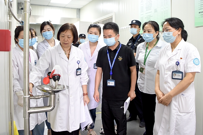 为落实“平安护航建党百年”安全隐患大排查大整治工作部署工作,6月16日,党委委员王晓军带领设备科、总务科、保卫科等职能科相关负责人开展全院安全生产检查。检查组通过实地察看的方式,对四楼仓库应急物资的储备、检验科危化品放置、消控室环境以及各病区消防安全等进行全面细致的检查。期间,保卫科抽查消防知识,指导医务人员熟练掌握干粉灭火器的使用,提升消防自救技能。王晓军指出要认真落实科室安全生产工作做到守土有...