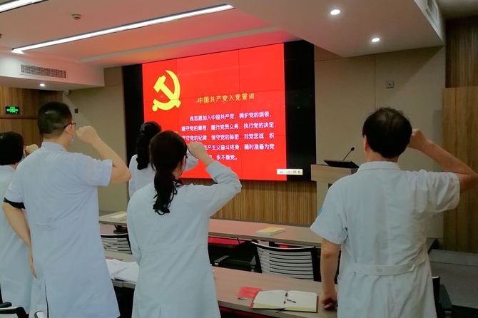 6月8日,中医药剂党支部组织全体党员开展“重温入党誓词,坚定理想信念”主题活动。入党誓词是行动指南,是共产党人的座右铭,不断重温,终身践行,前进路上,对照承诺,时时检视自我,不断校正航向,方能行稳以致远。活动中,支部全体党员一起高举右手,面对鲜红的党旗,再次庄严宣誓。铿锵恢宏的誓词,神圣而豪迈,铮铮誓言,体现了党员同志们对中国共产党的无限忠诚,坚定了“不忘初心,牢记使命。”通过重温入党誓词,让全体...