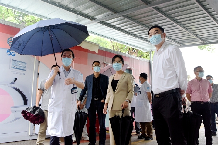 5月19日上午,玉环市委副书记、政法委书记卢小春带领相关部门负责人莅临我院督导新冠肺炎疫情防控工作。副市长陈康参加督导。在医院发热门诊,卢小春一行详细询问医院疫情防控、预检分诊、发热病人转运、设备消毒等工作情况,并叮嘱医护人员要做好自我防护,筑牢疫情防控的第一道防线。卢小春强调,各级、各部门必须准确把握疫情防控形势发展变化,强化问题意识、坚持底线思维,全面紧起来、严起来,做好打硬仗的思想准备和行动...