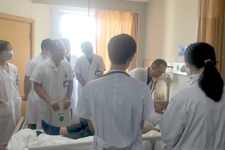 9月18日下午,科教科组织学员开展临床教学查房和讲学讲课,邀请心内科主任阮宏标参与教学查房,来自我院各科室的20多名实习生参加教学查房。本次教学查房以“冠心病、不稳定心绞痛”为主题,学员们针对查房要求,事先复习与该病例相关的理论知识,了解患者病情演变情况。查房过程中,阮宏标主任指导学员对病人进行病史询问和体格检查,围绕本病例的诊断、病因、治疗、预后等与学员互动、讨论,并对学员在查体、讨论中出现的问...