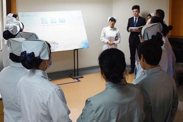 4月9日,我院病区第二期精细化管理培训正式开始。为鼓励科室人员士气,当天上午,内一科在科室护士站举办了个简短的启动仪式。仪式上,护士长李金娥解释了科室情况并强调培训意义,为参与培训的护士姐妹们加油鼓气。主任阮宏标也表示精细化管理培训是全科室的事情,再三叮嘱医生们要配合好病区第二期精细化管理的组织。随后,大家纷纷在签名版上留下自己的名字,许下承诺,会用心对待之后一周的培训。