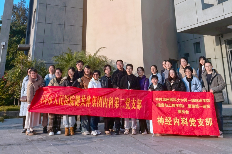 12月8日上午,温州医科大学附属第一医院神经内科支部来到玉环市人民医院,与内科第二党支部开展支部联建活动。当天上午,温州医科大学附属第一医院神经内科徐惠琴名医团队工作室揭牌仪式在玉环市人民医院举行,通过支部联建,助力神经内科学科建设,提升科室综合服务能力,满足人民群众的医疗服务需求。活动中,温一医神经内科主任徐惠琴带领温医大附一院神经内科团队,在我院门诊大厅开展“情系玉环医心为民”大型义诊,共为五...