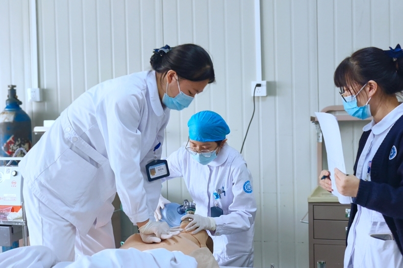 近日,护理部组织59名规培护士开展急救案例培训考核。通过临床实际案例的模拟演练,提升规培护士在紧急情况下的护理实践技能和应变能力,从而为患者提供更加专业、高效的护理服务。据了解,这次培训考核采用全新的模式,以两人为一组,协作开展护理操作。培训内容包括吸引装置的安装使用、咯血窒息应急处理、心肺复苏术操作、呼吸皮囊辅助通气操作以及除颤操作等多个方面,要求规培护士在紧张环境中迅速做出判断和应对。在培训过...