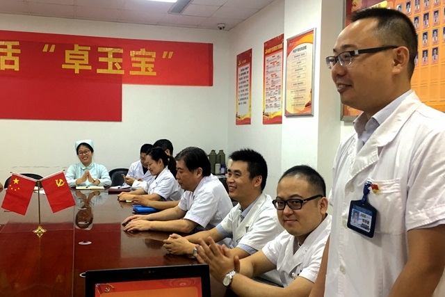 10月9日晚,外科第二党支部开展“对话卓玉宝”主题党日活动,全体党员齐聚一起学习该党支部“卓玉宝式好党员”陈孝敏的先进事迹,以身边的先进教育人、鼓舞人。陈孝敏同志,是我院医务科副科长、泌尿科主治医师。从医十年来,他对工作总是充满热情,待同事如兄妹,一心为病人着想,永远将病人的疾苦放在首位,时刻践行着一位医者的神圣使命。今年“七一”前夕被评为“卓玉宝式好党员”。“我也没做什么惊天动地的大事,只是和大...