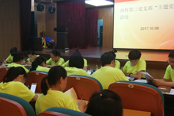 10月9日晚,为推进“两学一做”学习教育工作深入开展,内科第二党支部党员身穿支部统一服装,佩戴党徽,在2号楼5楼多功能厅开展10月主题党日活动。在会上,支部学习了“关于五起违反中央八项规定精神等问题的通报”,通过这五起违纪现象,各位党员反思己身,表示要牢记公私分明,在以后的工作当中自查自省,严格遵守作风建设规定。同时,为充分发挥基层党员组织和党员在全市民房等重点领域小芳整治铁拳行动中的战斗堡垒和先...