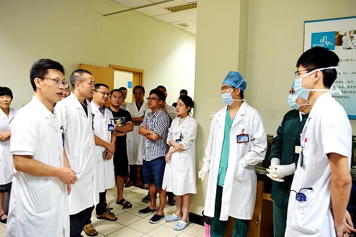 “有病人休克,赶紧按应急呼叫铃!”在我院CT室里,一病人突然因造影剂过敏引发休克,扫描人员立即停止操作,一边全力施救,一边启动应急预案。一分钟后,ICU、急诊科、麻醉科等医护人员火速赶到救援。8月31日下午,为提高我院非急救区域应急救护水平和整体协调能力,我院在CT室举行急救演练,放射科全体人员联合急诊科、ICU、麻醉科等共同参与。演练结束后,急诊科主任黄锡通详细讲解了《医院内非急救区域意外处置》...