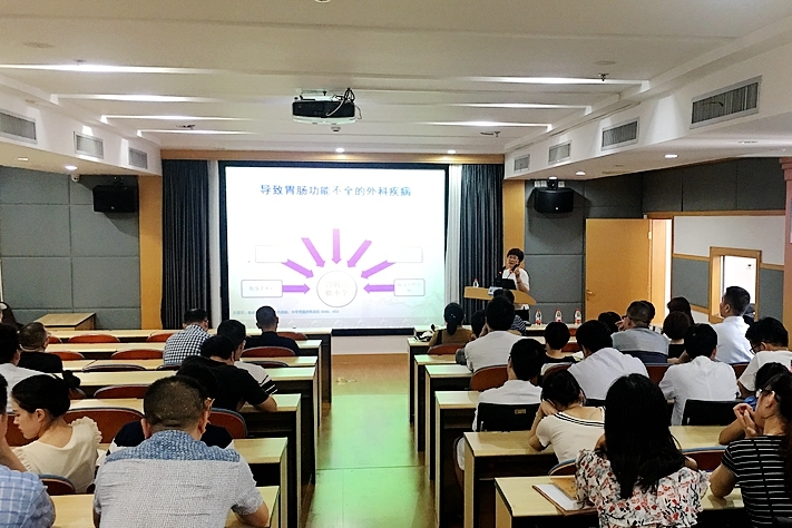 9月2日下午,温医一院胃肠外科主任医师姚建高在我院三楼学术报告厅作“肠内营养”专题讲座,从重症病人的肠道功能与营养支持、早期肠内营养、营养配方的选择及肠内营养不耐受的对策等多方面进行详细阐述,医院80多位医务人员参加了培训。