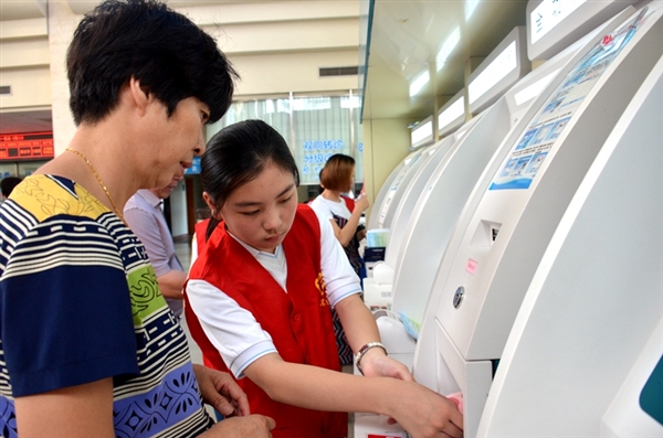 近日,我院门诊大厅里活跃着一群身穿红色马甲的少年,他们是来自各校的学生,为患者提供咨询、自助挂号、引导等服务,以一种特殊的方式度过这个暑假。7月13日,我院通过医院微信公众平台向社会发出招募启事,得到了学生的积极响应和家长的支持,共有50多位学生报名参加,以中学生和大学生为主,其中部分为我院职工儿女。学生志愿者们每天5-10人一组,患者不会使用自助机挂号,志愿者就帮忙操作;患者看不清药单上的字,志...