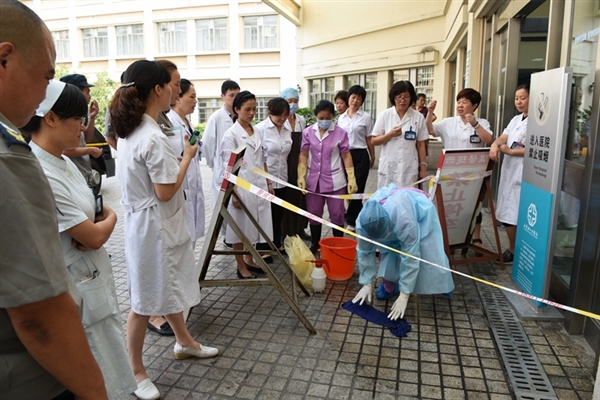 为提高医务人员应对标本泄露事故的应急处理能力,有效地防止“生物泄漏”事故造成人员和环境的危害,7月27日下午,院感科联合检验科、防保科、总务科、保卫科等部门进行了一次实验室生物安全事故应急演练。当天下午3点,一名护送人员“不慎”将一个血液标本溢洒于地面上,并造成人员直接污染。医院立即启动“实验室生物安全应急预案”,相关人员逐级上报事件,保卫科拉起警戒线负责安保工作,受污染人员进行消毒处理,应急处置...