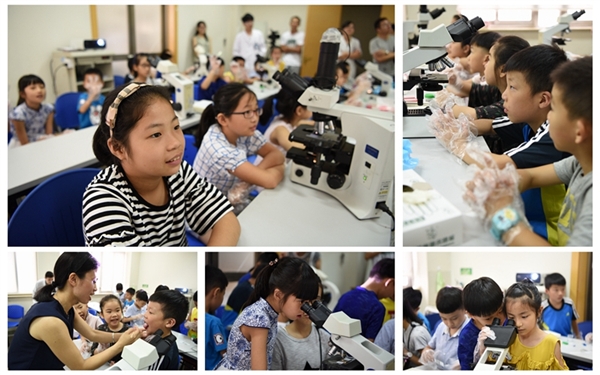 7月30日上午,环山小学20位孩子走进我院检验科,上了一堂特殊的暑期微课程。在检验科工作人员的指导下,孩子们学会了镜下找物,身临其境地感受到了镜下的细胞形态。检验科主任章林华围绕显微镜的历史、显微镜的成像原理与操作要点、血细胞与健康、微生物与口腔卫生,边讲课边做实验,镜下的雪花、头发、砂石、细胞、细菌,完全颠覆了孩子们的想像。“各位同学,再看看你们的口腔刮片在显微镜下是什么样子的呢……”章林华“一...