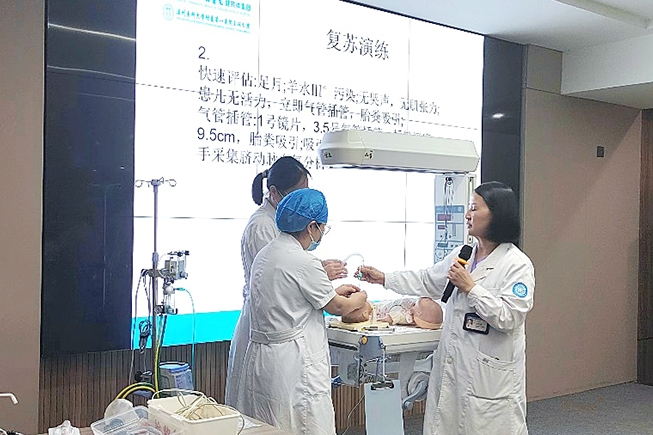 为提高产科、儿科、麻醉科医务人员新生儿复苏技能,9月25日晚,我院在学术报告厅举办玉环市危重孕产妇和新生儿救治技能培训班。此次培训采用现场授课与直播结合的形式开展,产科、儿科、新生儿科、麻醉科、手术室等科室医护医务人员参加现场听课,其余科室收看钉钉线上同步直播。课上,产科主任许敏围绕产后出血的定义、出血的评估、出血的防治及急救处理,详细讲解了严重产后出血的相关知识。新生儿主任刘红艳通过图文并茂的方...