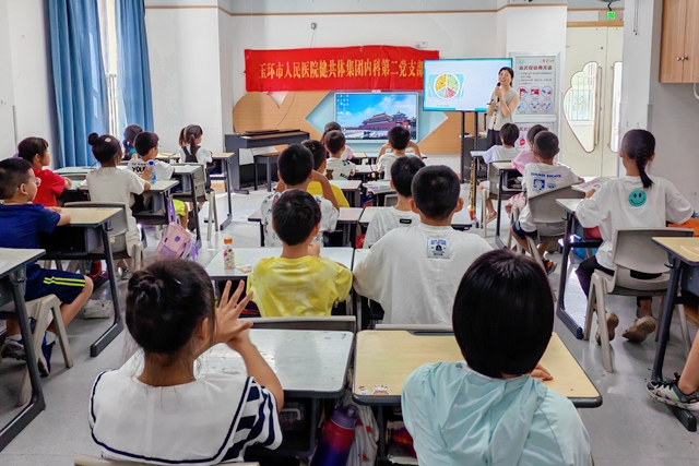 8月20日下午,内科第二党支部联合内分泌科党员志愿者一行,来到玉环市实验幼儿园,开展主题为“吃动平衡,抗击肥胖”的健康素养课堂,此次活动共有20多名小朋友参与。活动安排有健康小讲座、互问互答等环节,将肥胖的危害,健康饮食理念宣传到心,引导儿童青少年树立正确的健康理念,养成健康的生活方式与行为习惯。