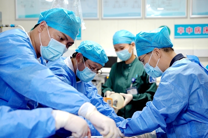 近日,玉环市人民医院成功完成了一例ECMO(体外膜肺氧合)支持下急性心肌梗死急诊PCI(经皮冠脉介入治疗),多学科联合救治,破除重重困境,争分夺秒抢夺生机,全力守住“生命线”。心梗合并呼吸心跳骤停困境重重8月18日上午9时许,61岁的张伯因为身体不适前往附近药店购买药物,却突然倒在药店门前。玉环市人民医院急诊医护团队火速抵达现场,发现张伯心跳呼吸骤停,立即进行心肺复苏和气管插管,争分夺秒将其送往医...