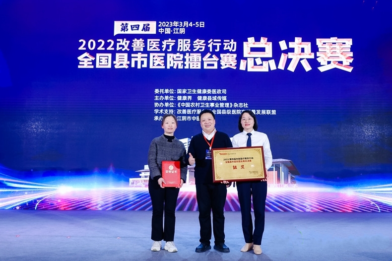 在2022第四届改善医疗服务行动全国县市医院擂台赛总决赛中《实施“双循环”战略构建“三位一体”慢病协同管理体系》项目荣获大赛“银奖”3月4-5日,由国家卫生健康委医政医管局指导,健康界、健康县域传媒联合主办的2022第四届改善医疗服务全国县市医院擂台赛总决赛在江苏江阴举行。董寅院长亲自带队,2个项目在全国总决赛再度出击。本次擂台赛600多家医院,1800个案例,经过层层选拔、激烈角逐,在来自全国5...