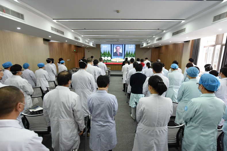 12月6日上午10时,党中央、全国人大常委会、国务院、全国政协、中央军委在北京人民大会堂隆重举行江泽民同志追悼大会。为表达对江泽民前主席的深切哀悼,玉环市人民医院健共体集团党政班子、中层干部及各支部书记、委员,统一着白大褂,佩戴党徽、医用外科口罩,在门诊三楼学术厅集中收看江泽民同志追悼大会直播,满怀敬意和深情,深切悼念。全体党员及全院职工通过广播、电视、网络等官方平台收听收看追悼大会直播。追悼会当...