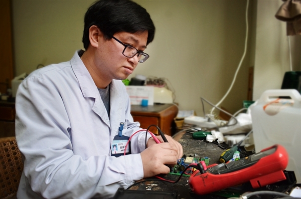 像这样在维修中“不厌其烦”降低成本,已成为设备科约定俗成的做法。屈彦天说,在设备科,大到CT机、B超等大型医疗设备,小到微泵、监护仪等各类医疗仪器,只要出现故障,他们一方面积极联系供应商,一方面想方设法争取花最少的钱在最短的时间内自行解决。但这其中,却要付出更多的辛劳。有些需要维修的设备,年代久远配件淘汰特别不好找,就要反复分析查找故障,跑市场、上网淘,了解维修材料的性能,查看配件质量,货比三家,择优而取。