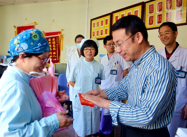 5月12日上午,县卫计局局长盛性毅、副书记林金玉一行,来到我院慰问了护理工作者,向全体护士表示节日的慰问与崇高的敬意!