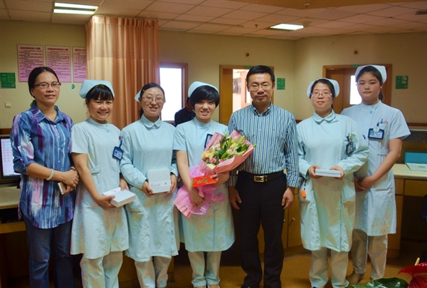 县卫计局局长盛性毅(右2)慰问ICU团队