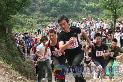 在简短的开幕式后,155名参赛选手被分为5组,男队员3组,女队员2组,每人胸前都戴好号码布。随着裁判员的一声令下,登山比赛正式开始了,第一组男选手首先出发。