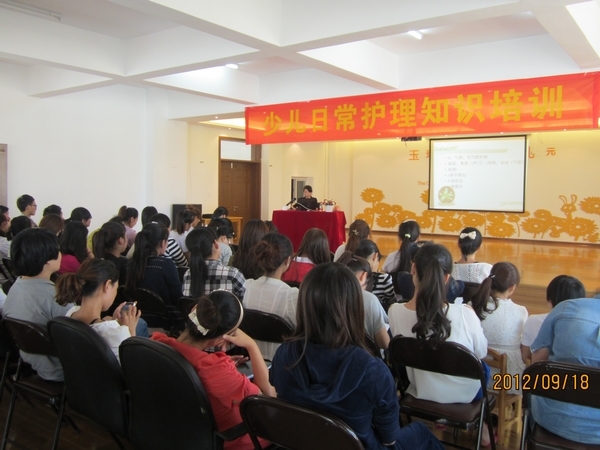 9月18日,应县中心幼儿园渔岙分园邀请,儿科青年文明号三名医护人员来到该园,为该园老师进行紧急护理和处理的知识培训。
