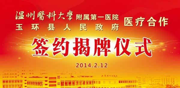 温州医科大学附属第一医院与玉环县人民政府医疗合作签约揭牌仪式于2月12日上午在我院举行,我院正式成为温州医科大学附属第一医院玉环分院。届时,温医一院将选派心内科、神经内科、肝胆外科、骨科、妇科等专家在我院现场义诊。今后温医一院医疗专家团队将长期驻扎我院开展医疗活动。敬请关注!
