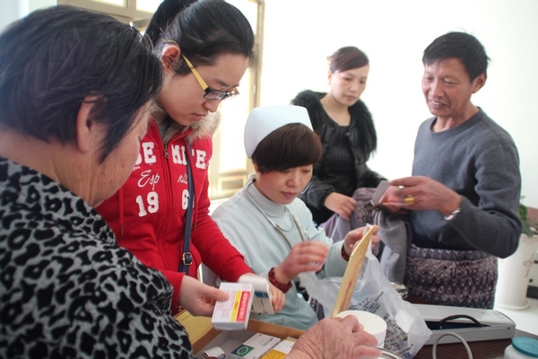 当天上午10时许,医护人员来到玉城街道双庙村,探望尿毒症患者老金。见到“老朋友”,老金喜悦之情,溢于言表。老金今年71岁。2009年8月老金被查出肾病,2012年发展成尿毒症,长期靠腹膜透析维持生命,曾多次在我院治疗。