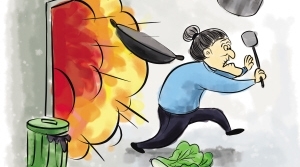 闻到家里有煤气味,她转动煤气灶开关,他点打火机找漏点