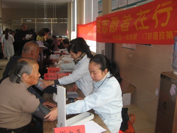 医护人员一方面为他们进行血压、血糖测量,询问用药史并记录,一方面热情而耐心地认真检查,专心诊治,并详细解答了就诊人员提出的问题。